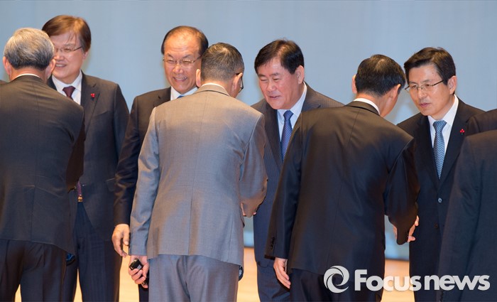 (세종=포커스뉴스) 황교안 국무총리와 각 부처 장관들이 4일 오전 세종시 정부세종청사 대강당에서 열린 2016년 정부시무식에 참석해 신년인사를 하고 있다.