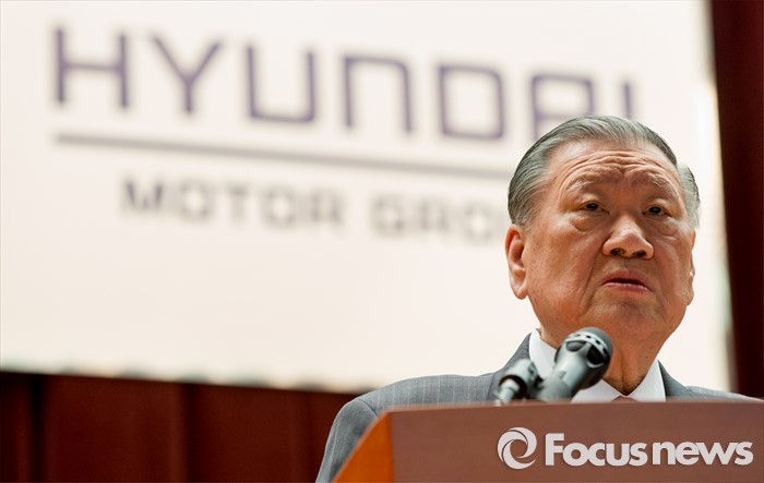 (서울=포커스뉴스) 4일 오전 서울 서초구 현대자동차 본사 대강당에서 열린 2016년도 시무식에 참석한 정몽구 현대차그룹 회장이 신년사를 하고 있다.