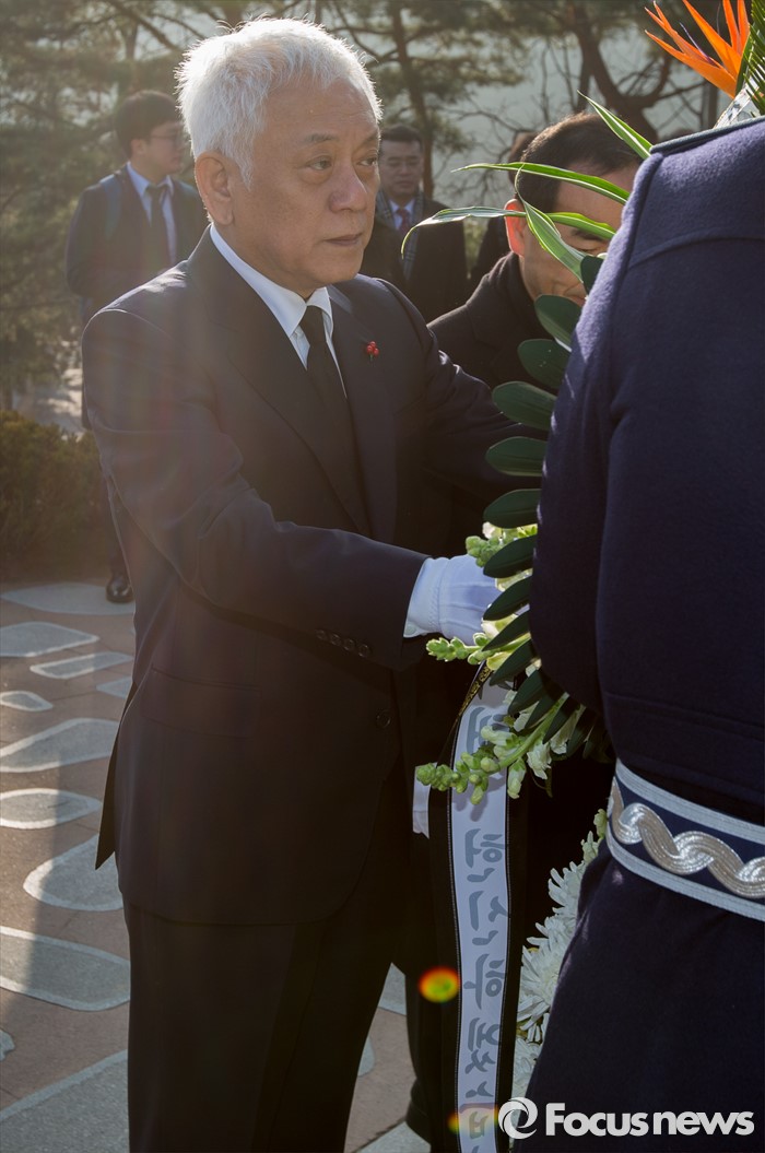 (서울=포커스뉴스) 김한길 무소속 의원이 4일 오전 서울 동작구 국립서울현충원 故 김대중 전 대통령 묘역을 찾아 참배를 하고 있다.