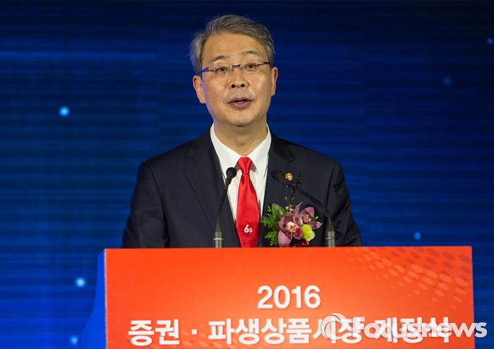 (서울=포커스뉴스) 병신년(丙申年) 새해 첫 증시 개장일인 4일 오전 영등포구 서울 여의도 거래소 2016년도 증권·파생상품시장 60주년 개장식에서 임종룡 금융위원장이 축사를 하고 있다.