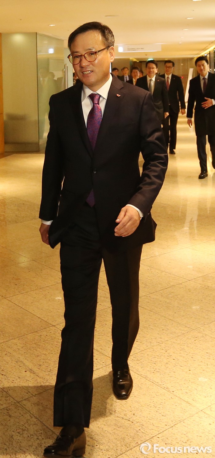 (서울=포커스뉴스) 장동현 SK텔레콤 사장이 4일 오전 서울 광진구 워커힐호텔에서 열린 SK그룹 신년회에 참석하고 있다.