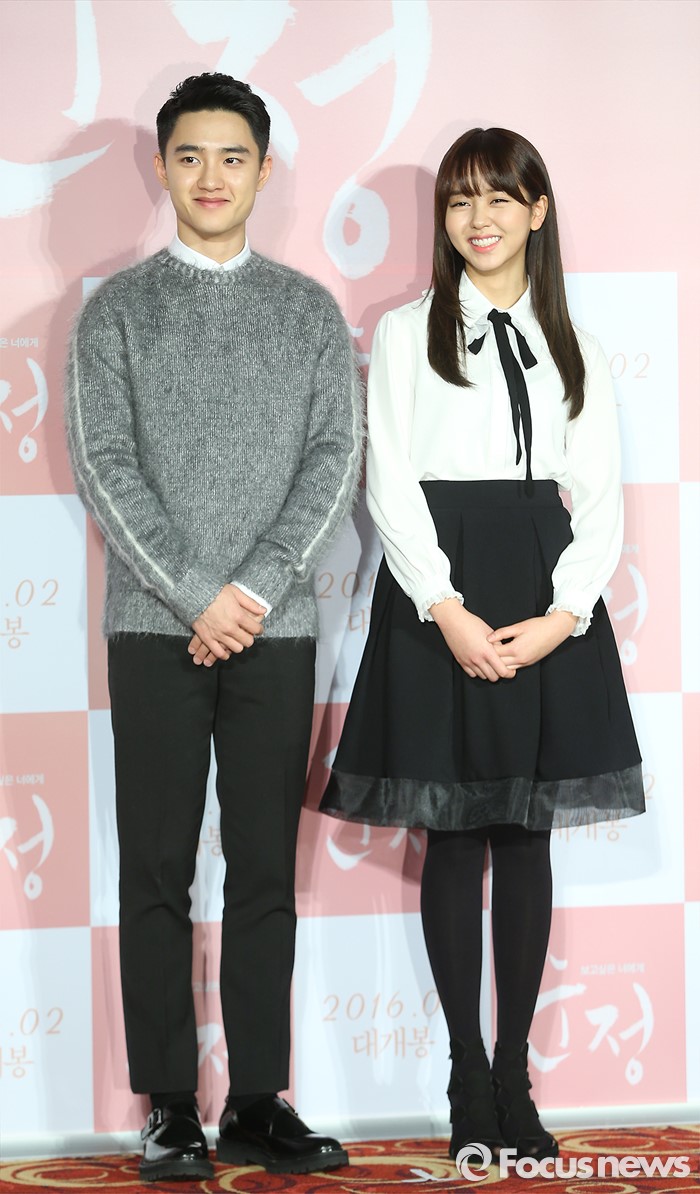(서울=포커스뉴스) 4일 오전 서울 광진구 롯데시네마 건대입구점에서 열린 영화 '순정' 제작보고회에 참석한 배우 도경수(왼쪽)와 김소현이 포토타임을 갖고 있다.