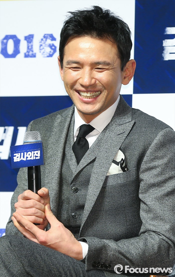 (서울=포커스뉴스) 4일 오후 서울 강남구 압구정 CGV에서 열린 영화 '검사외전' 제작보고회에 참석한 배우 황정민이 환한 미소를 짓고 있다.