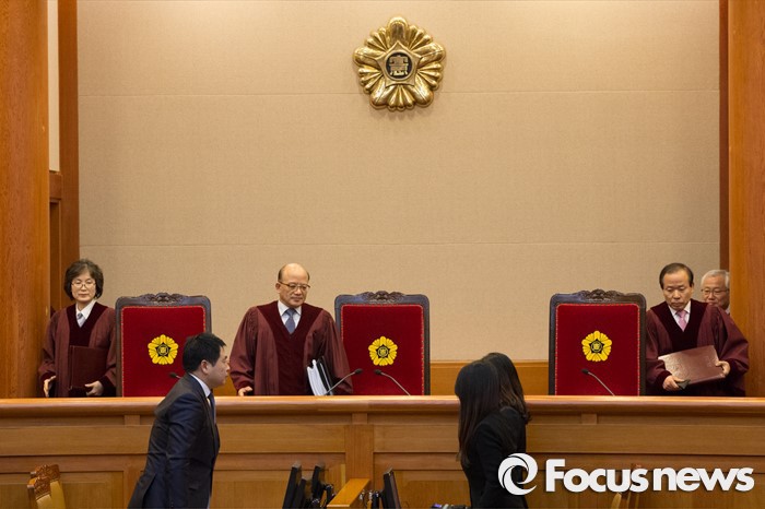 이에 대해 이정미·이진성·강일원 재판관은 형사와 민사 재판을 구분해서 판단하면 안 된다며 반대 의견을 내기도 했다.박한철 헌법재판소 소장이 지난해 12월 23일 오후 서울 종로구 헌법재판소 대심판정에서 한일청구권협정의 위헌 여부에 대한 선고를 위해 입장하고 있다.허란 기자