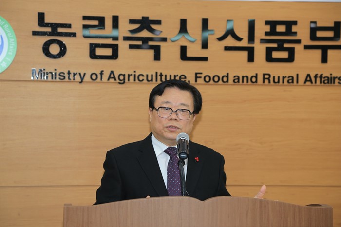 (세종=포커스뉴스) 이동필 농림축산식품부장관이 4일 세종시 정부세종청사 농식품부 대회의실에서 열린 시무식에 참석해 신년사를 하고 있다.