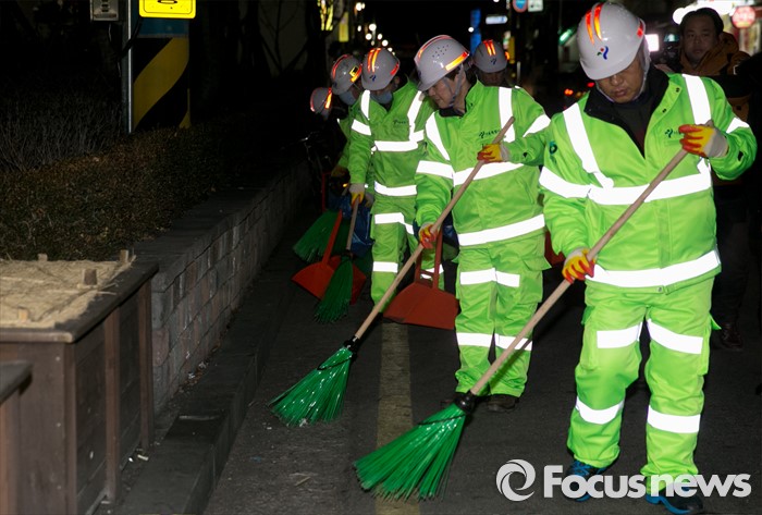 (서울=포커스뉴스) 신당 창당을 추진 중인 안철수 무소속 의원이 5일 오전 서울 영등포역 동부광장 인근에서 환경미화원들과 함께 새해맞이 청소를 하고 있다.
