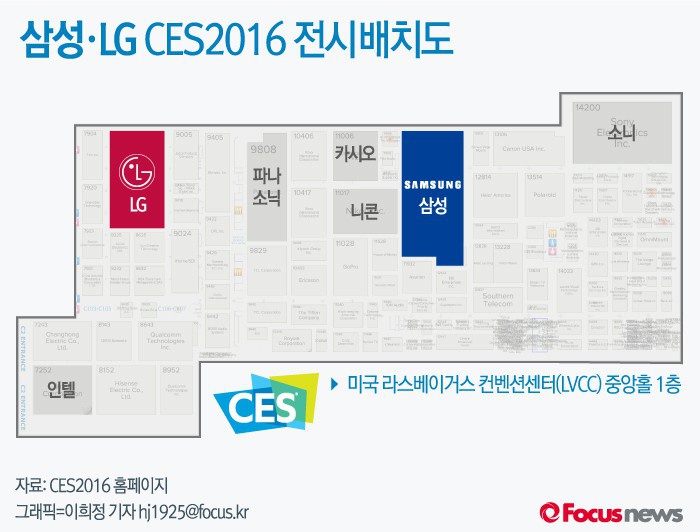 국내외에서 TV, 냉장고, 세탁기, 청소기 등 첨단 가전제품을 놓고 각축을 벌여온 두 기업은 이번에도 CES 2016 전시장 내 인근에 자리를 잡았다. 양사 모두 대형 전시 공간(삼성 2600㎡‧LG 2044㎡)을 확보하고 'CES2016 혁신상' 수상제품 및 신제품을 공개할 예정이다.
