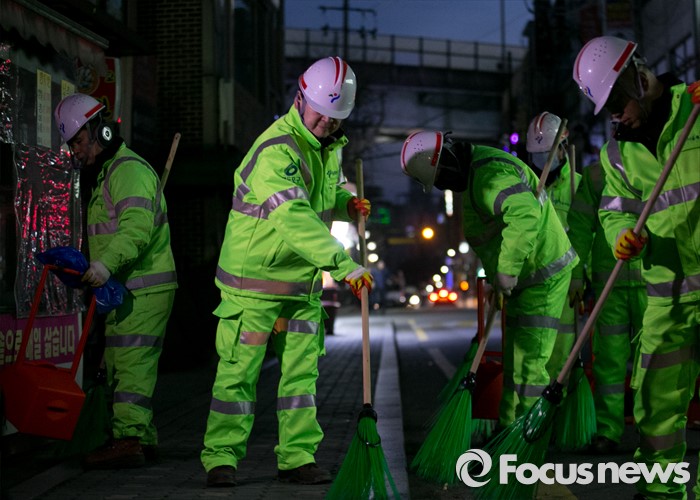 (서울=포커스뉴스) 신당 창당을 추진 중인 안철수 무소속 의원이 5일 오전 서울 영등포역 동부광장 인근에서 환경미화원들과 함께 새해맞이 청소를 하고 있다.