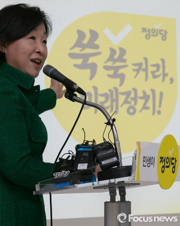 (서울=포커스뉴스) 5일 오전 서울 여의도 국회에서 열린 정의당 20대 총선 기조, 캐치프레이즈, CI, 전략 캠페인 공개 시연회에 참석한 심상정 상임대표가 설명을 하고 있다.