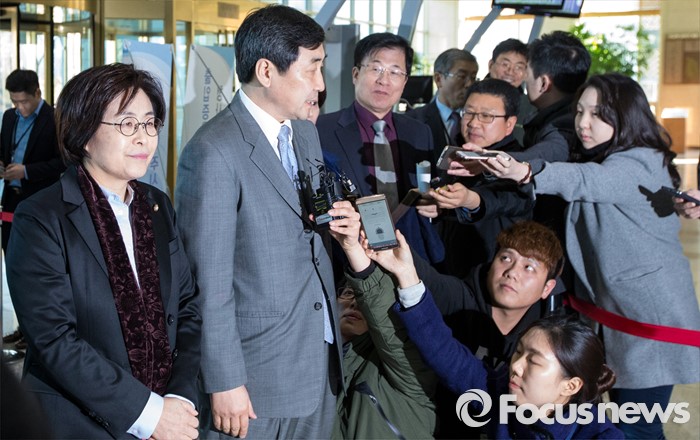 (서울=포커스뉴스) 이종걸 더불어민주당 원내대표가 한일간 위안부 협상과 관련해 5일 오후 서울 종로구 외교부 청사를 항의 방문해 취재진에게 입장을 밝히하고 있다.