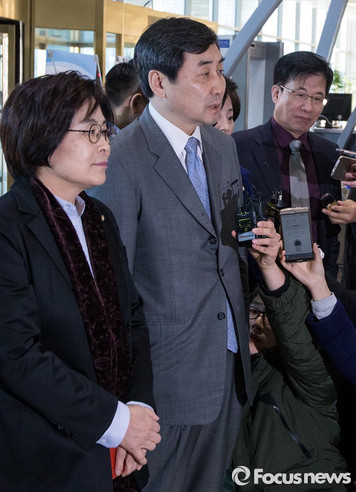 (서울=포커스뉴스) 이종걸 더불어민주당 원내대표가 한일간 위안부 협상과 관련해 5일 오후 서울 종로구 외교부 청사를 항의 방문해 취재진에게 입장을 밝히하고 있다.