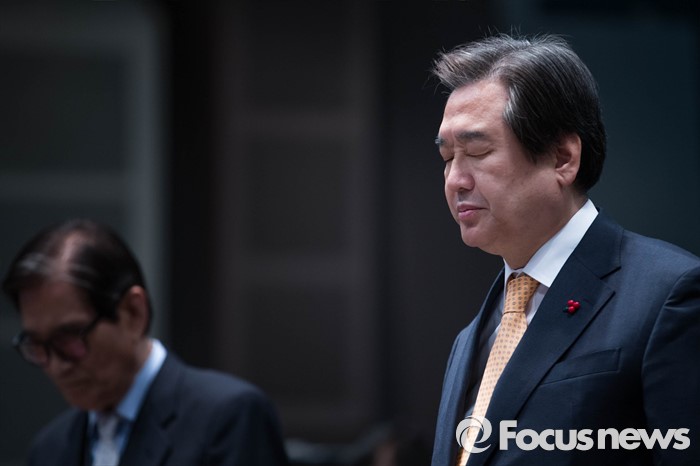 (서울=포커스뉴스) 김무성 새누리당 대표가 5일 오후 서울 중구 프레스센터에서 열린 ‘2016 시민사회 합동 신년회’에 참석, 묵념을 하고 있다.