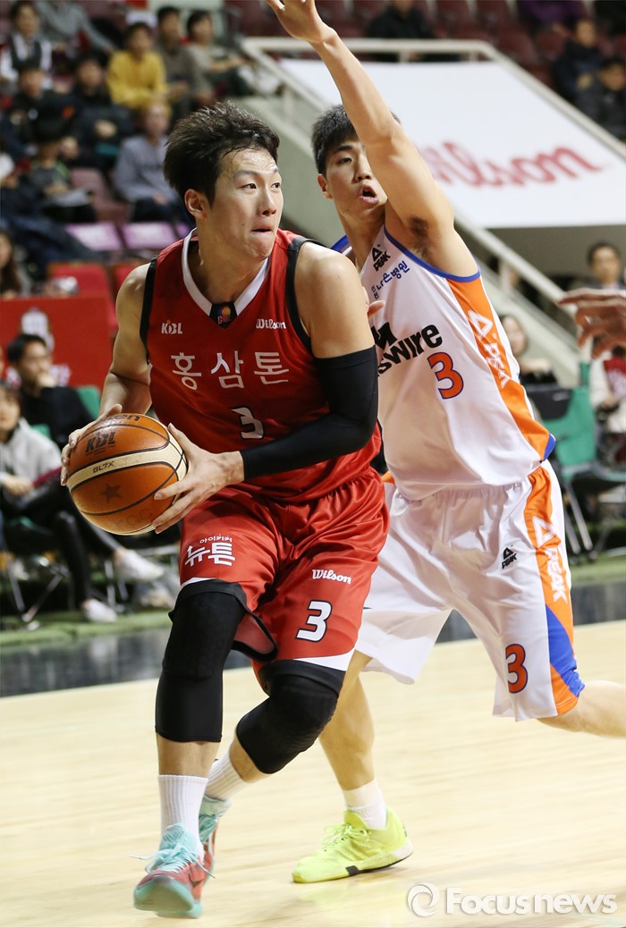 (안양=포커스뉴스) 5일 안양실내체육관에서 열린 2015-2016 프로농구 KGC-전자랜드 경기에서 KGC 이정현이 전자랜드 김지완의 수비를 뚫으며 골밑 돌파를 노리고 있다.
