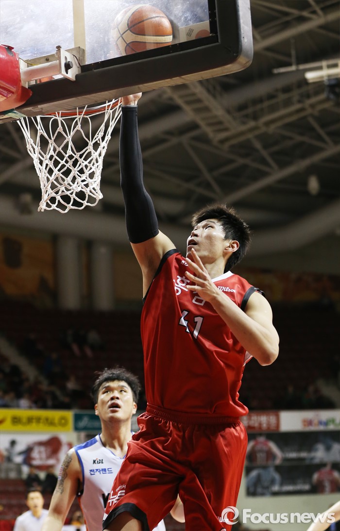 (안양=포커스뉴스) 5일 안양실내체육관에서 열린 2015-2016 프로농구 KGC-전자랜드 경기에서 KGC 오세근이 레이업슛을 시도하고 있다.