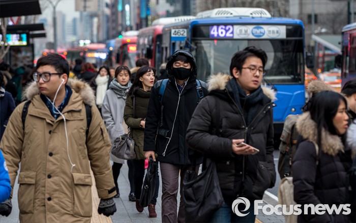 (서울=포커스뉴스) 절기상 소한(小寒)인 6일 오전 서울 강남역 인근에서 직장인들이 영하권 강추위에 두꺼운 외투를 입고 출근길을 재촉 하고 있다.