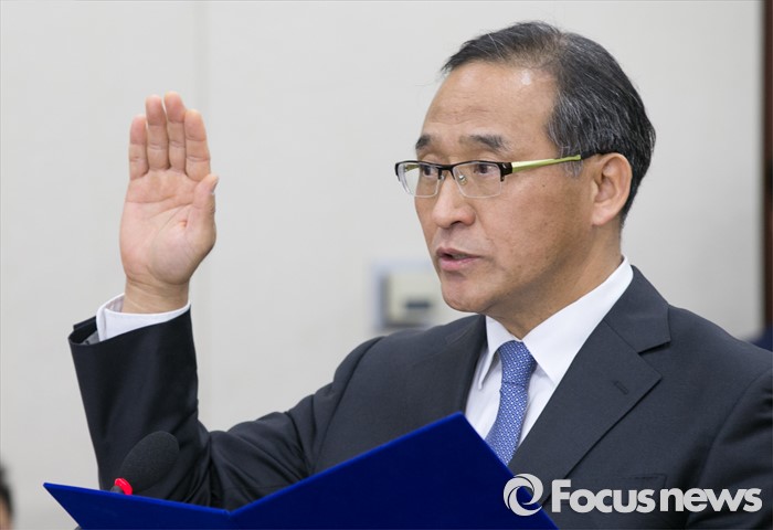 (서울=포커스뉴스) 홍윤식 행정자치부 장관 후보자가 6일 오전 서울 여의도 국회에서 열린 인사청문회에 출석해 선서를 하고 있다.