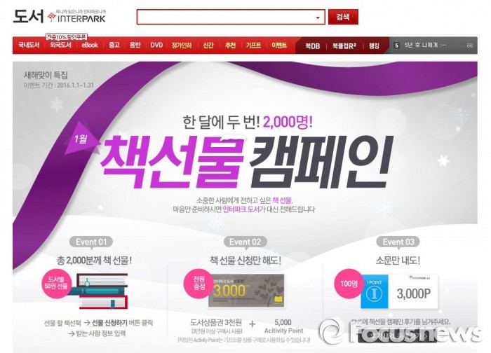 (서울=포커스뉴스) 인터파크도서는 오는 1월31일까지 소중한 사람에게 전하고 싶은 책 선물을 대신해주는 '새해맞이 특집, 책선물 캠페인'을 진행한다고 6일 밝혔다.
