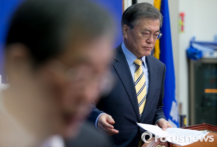 (서울=포커스뉴스) 문재인 더불어민주당 대표가 6일 오전 서울 여의도 국회에서 열린 최고위원회의에 참석하고 있다.
