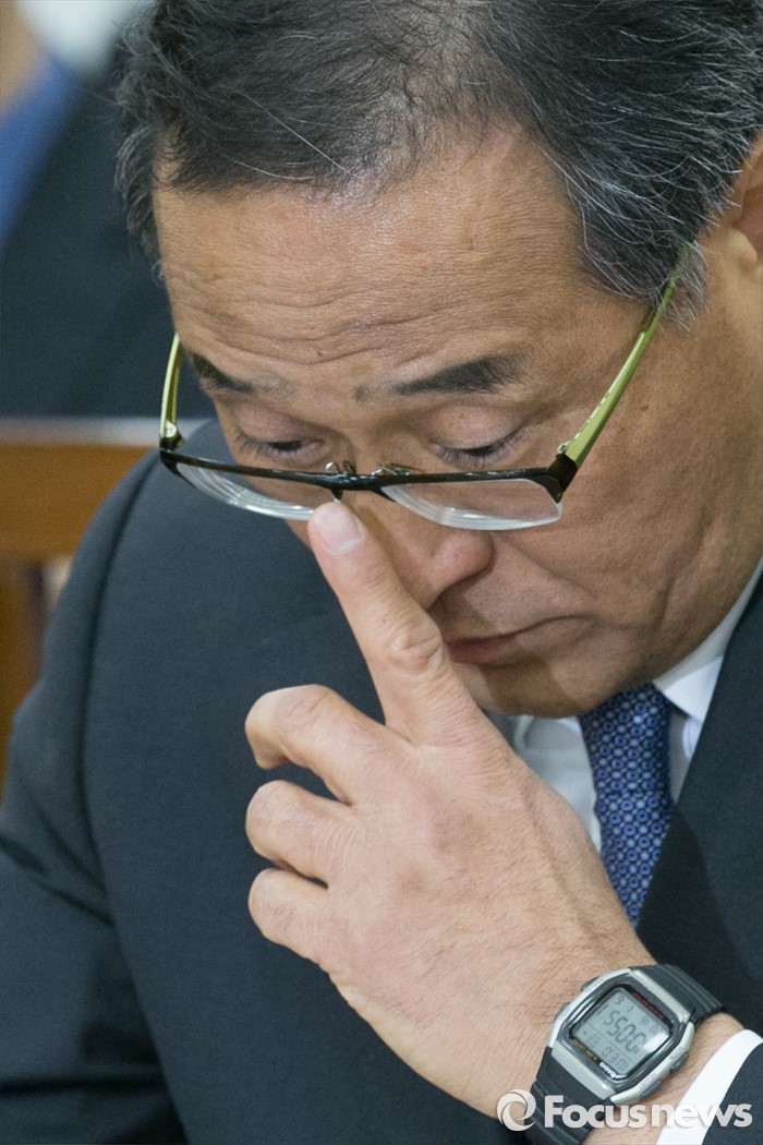 (서울=포커스뉴스) 홍윤식 행정자치부 장관 후보자가 6일 오전 서울 여의도 국회에서 열린 인사청문회에 출석해 생각에 잠겨 있다.