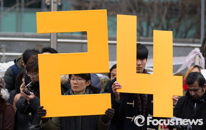 (서울=포커스뉴스) 6일 오후 서울 종로구 구 일본대사관 앞에서 열린 제1212차 일본군 위안부 문제해결을 위한 정기수요집회에서 참가자들이 수요집회 24주년을 알리는 손피켓을 들고 있다.