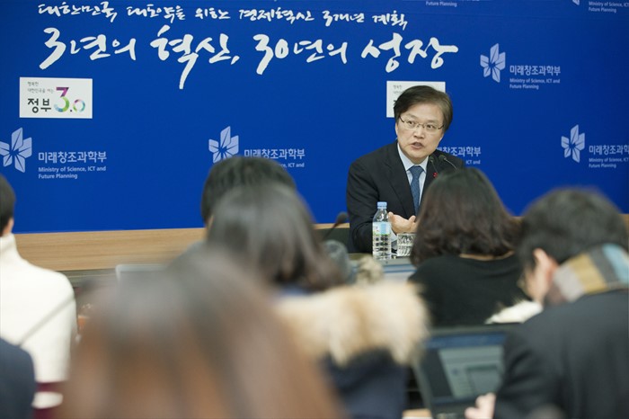 | △ 기자회견하는 최양희 미래부 장관 |