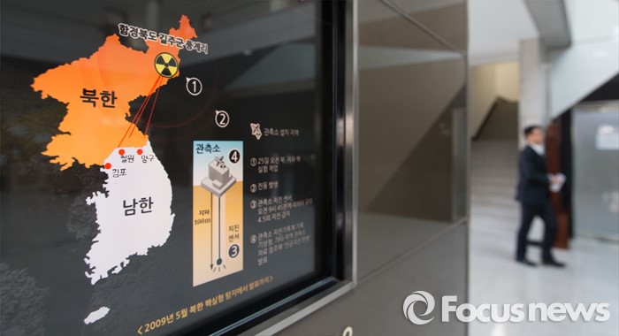 (대전=포커스뉴스) 북한이 수소탄 핵실험을 성공했다고 발표한 가운데 6일 오후 대전 유성구 한국지질자원연구원 로비에 설치된 정보검색 모니터에 핵실험에 의한 지진 관련 정보가 보이고 있다.