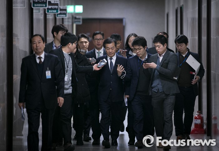 (서울=포커스뉴스) 황인무 국방부 차관이 6일 오후 서울 여의도 국회에서 북한 핵실험 관련 긴급 더불어민주당 최고위원 연석회의에 앞서 새누리당 보고를 마친 뒤 회의실로 향하고 있다.