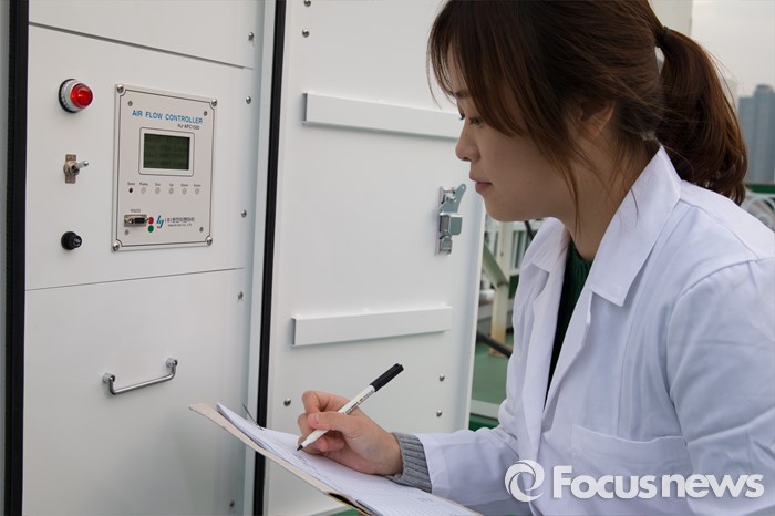 (서울=포커스뉴스) 북한이 수소탄 실험에 성공했다고 발표한 6일 오후 서울 성동구 한국원자력안전기술 서울지방방사능측정소에서 연구원이 방사능 오염 여부를 측정해 기록하고 있다.