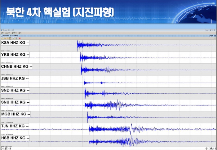 | △ 북한 4차 핵실험 지진파형 |