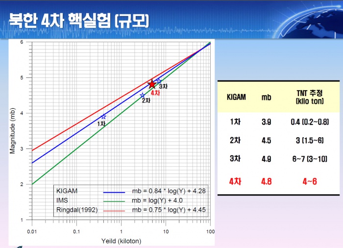 | △ 북한 4차 핵실험 규모 그래프 |