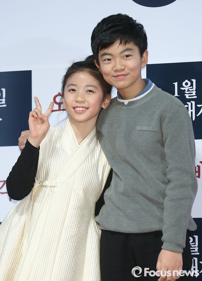 영화 '오빠생각'은 한국전쟁 당시 실존했던 어린이 합창단을 모티브로 하고 있다. 정준원과 이레의 스크린 호흡뿐만 아니라 노래 실력까지 엿볼 수 있는 '오빠생각'은 2016년 1월 개봉한다.(서울=포커스뉴스) 6일 오후 서울 광진구 롯데시네마 건대입구점에서 열린 영화 '오빠생각' 언론시사회에 참석한 아역배우 이레(인쪽)와 정준원이 포토타임을 갖고 있다. 2016.01.06 김유근 기자