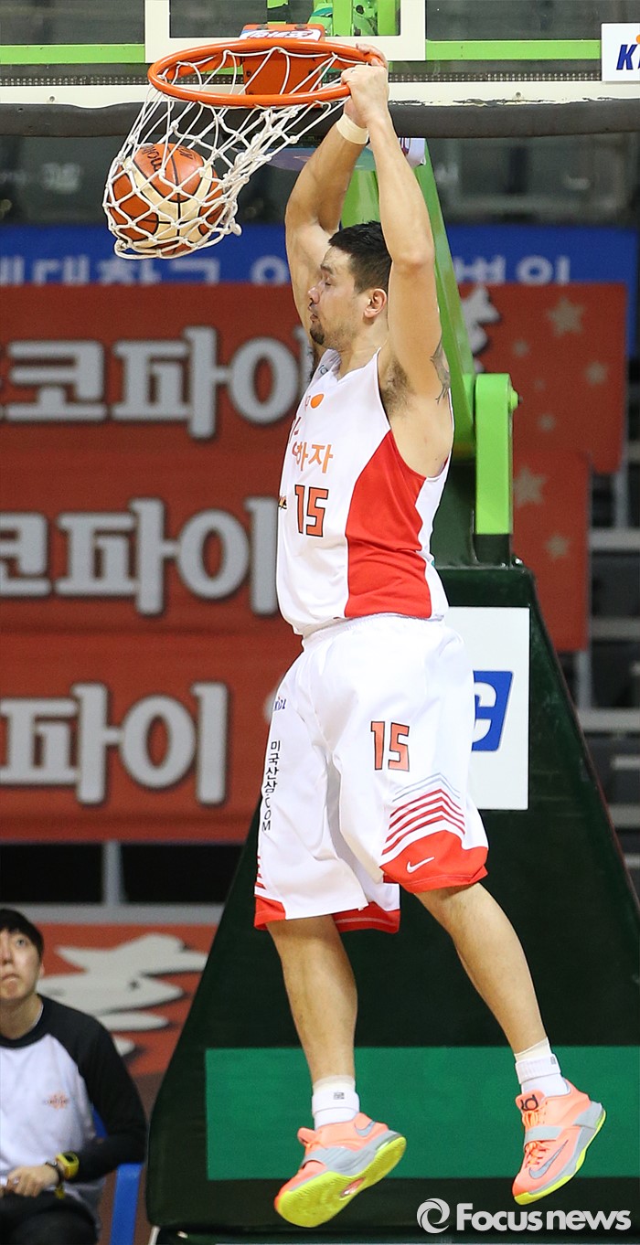 (고양=포커스뉴스) 6일 고양체육관에서 열린 2015-2016 프로농구 오리온-SK 경기에서 SK 김민수가 덩크슛을 성공시키고 있다.