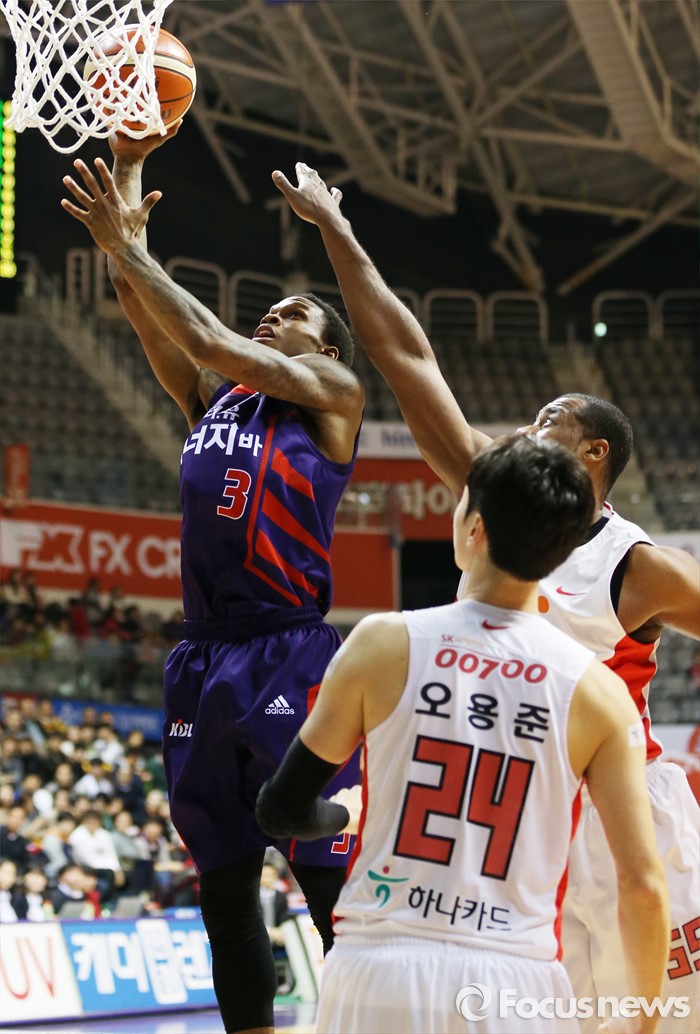 (고양=포커스뉴스) 6일 고양체육관에서 열린 2015-2016 프로농구 오리온-SK 경기에서 오리온 조 잭슨이 SK 사이먼의 마크를 뚫고 레이업슛을 시도하고 있다.