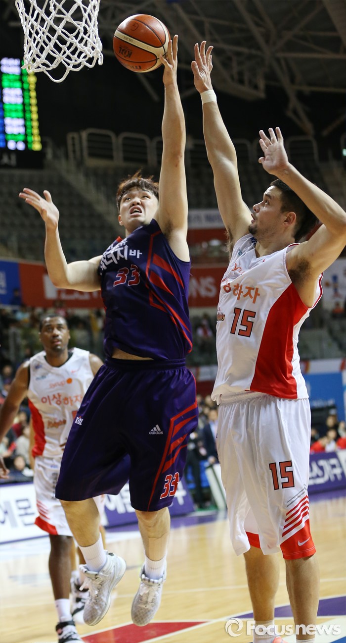 (고양=포커스뉴스) 6일 고양체육관에서 열린 2015-2016 프로농구 오리온-SK 경기에서 오리온 이승현이 SK 김민수의 마크를 받으며 레이업슛을 시도하고 있다.