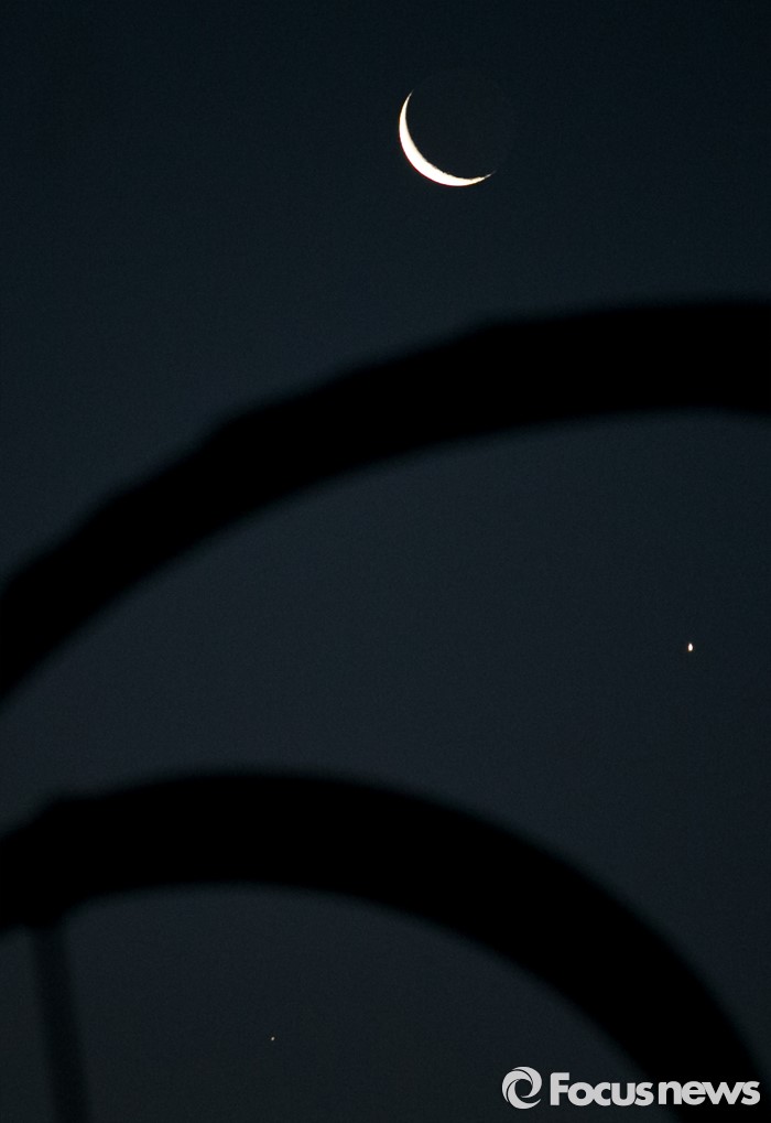 (서울=포커스뉴스) 7일 오전 서울 여의도 국회에서 바라본 하늘에 그믐달과 함께 샛별이 빛나고 있다.