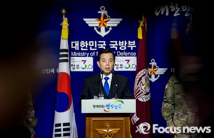 (서울=포커스뉴스) 한민구 국방부 장관이 7일 오전 서울 용산구 국방부에서 북한 수소탄 실험에 대한 한미 양국 공조 방안을 발표하고 있다.