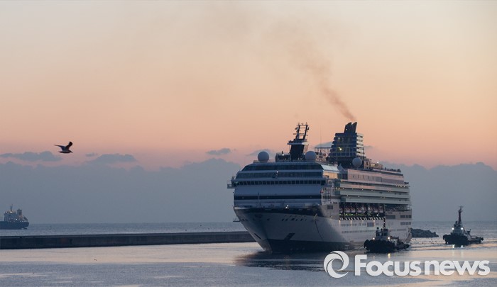 (동해=포커스뉴스) 7일 오전 강원 동해항 중앙부두에 중국 천해크루즈사의 스카이씨 골든 에라호가 승객 1천800여 명을 싣고 입항하고 있다. 이날 강원도를 찾은 관광객들은 정선 강원랜드 눈썰매장, 평창 용평·알펜시아스키장, 속초 중앙시장, 설악산 등을 둘러본 후 오후 5시에 일본으로 향할 예정이다.