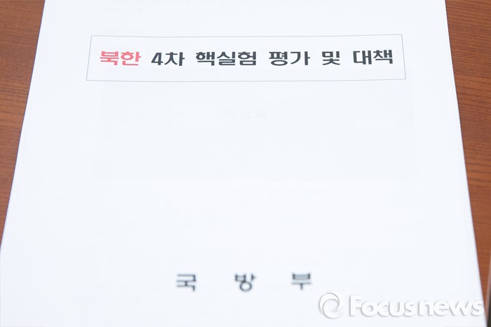 (서울=포커스뉴스) 7일 오전 서울 여의도 국회 국방위원회 전체회의실에 북한의 수소탄 핵실험과 관련한 국방부 자료가 놓여 있다.