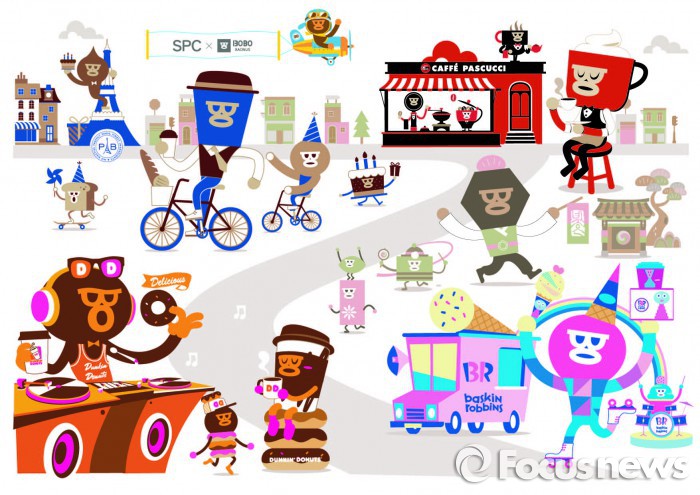 보 원숭이는 신진 아트토이 작가 정웅이 알파벳 ‘BO’를 원숭이 얼굴 모양으로 형상화해 창작한 캐릭터다. SPC그룹과의 협업으로 선보이는 보원숭이는 파리바게뜨·배스킨라빈스·던킨도너츠·파스쿠찌·빚은 등 브랜드 별 개성을 담았다.
