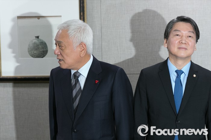 (서울=포커스뉴스) 더불어민주당을 탈당한 김한길(왼쪽), 안철수 의원이 7일 오후 서울 여의도 국회 의원회관 의원식당에서 오찬 회동을 위해 만나, 자리로 향하고 있다.