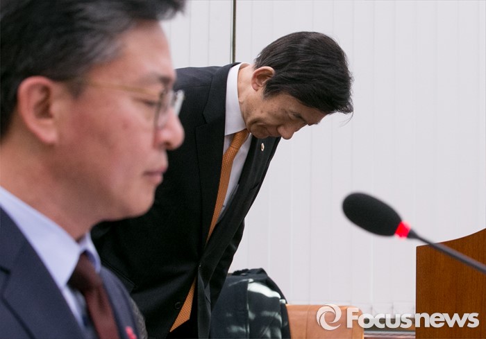 (서울=포커스뉴스) 7일 오후 서울 여의도 국회에서 북한의 수소탄 핵실험 발표 등에 관한 긴급 현안보고를 위해 열린 외교통일위원회 전체회의에 참석한 윤병세 외교부 장관이 현안보고에 앞서 인사하고 있다. 왼쪽은 홍용표 통일부 장관.