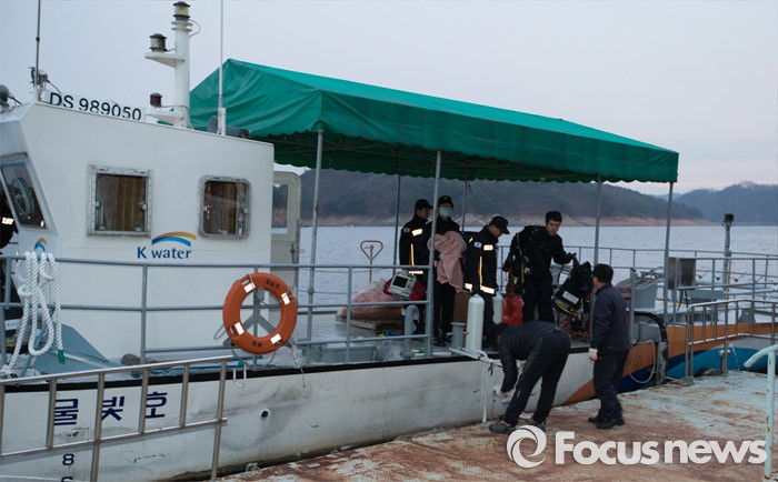(대전=포커스뉴스) 7일 오후 1시 53분께 대전 대덕구 대청호 일원에서 대전 동구청 유해조수방지단 보트가 침몰해 2명이 구조되고 2명이 실종된 가운데 대전·충북소방본부 119구조대가 날이 어두워지자 실종자 수색 작업을 중단하고 돌아오고 있다.