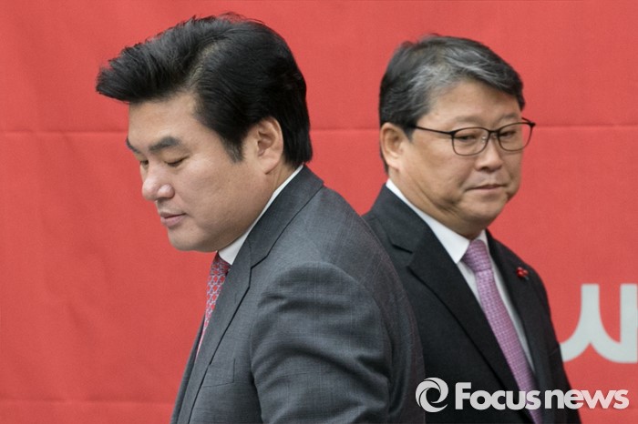 | △ 자리 향하는 원유철·조원진 |