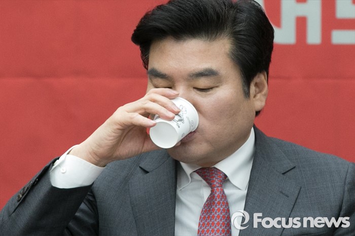 (서울=포커스뉴스) 원유철 새누리당 원내대표가 8일 오전 서울 여의도 국회에서 열린 원내대책회의에 참석해 물을 마시고 있다.