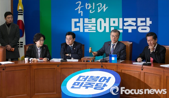 (서울=포커스뉴스) 문재인 더불어민주당 대표가 8일 오전 서울 여의도 국회에서 열린 최고위원회의에 참석해 개의 선언을 하고 있다.