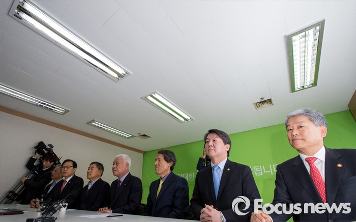 (서울=포커스뉴스) 8일 오전 서울 마포구 안철수 무소속 의원 당사 대회의실에서 열린 창당준비점검회의에 참석한 안 의원이 모두발언을 하고 있다. 왼쪽부터 유성엽 의원, 문병호 의원, 황주홍 의원, 김한길 의원, 한상진 창당준비위원장, 안 의원, 김동철 의원, 임내현 의원.