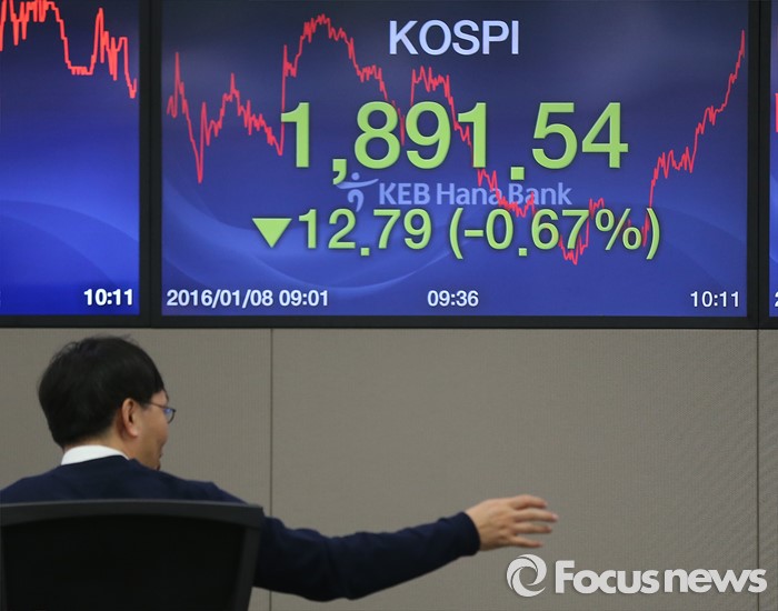 (서울=포커스뉴스) 남북 긴장고조와 중국발 악재 영향으로 코스피 지수 1900선이 무너진 8일 오전 서울 중구 KEB하나은행 딜링룸에서 직원들이 업무에 열중하고 있다.