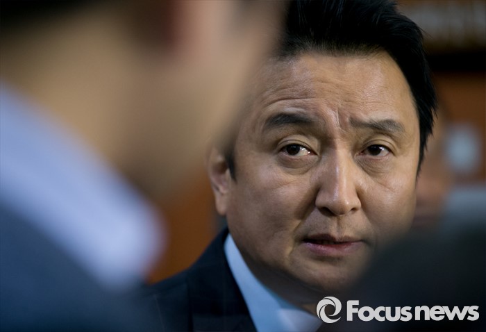 (서울=포커스뉴스) 김영환 더불어민주당 의원이 8일 오전 서울 여의도 국회 정론관에서 탈당 기자회견을 마친 뒤 취재진 질문에 답하고 있다.