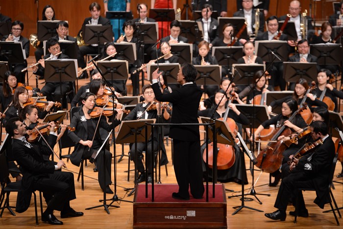 업계에서는 이들 3명의 연주자도 계약기간이 끝나면 서울시향을 떠날 것으로 예상하고 있다. 다만 트럼펫 수석인 알렉산드르 바티는 현재 연주자 양성 아카데미인 '바티 브라스 아카데미'를 이끌고 있어 서울시향에 남을 가능성도 열려있다.(서울=포커스뉴스) 10년간 이끌어 온 서울시향을 떠나는 정명훈 예술 감독이 30일 오후 서울 서초구 예술의 전당에서 '정명훈의 합창, 또 하나의 환희' 공연을 선보이고 있다. <사진제공=서울시립교향악단>
