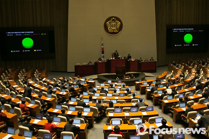 (서울=포커스뉴스) 19대 국회 12월 임시국회 마지막날인 8일 오후 서울 여의도 국회 본회의장에서 북한의 제4차 핵실험 규탄 및 핵폐기 촉구 결의안이 통과되고 있다.